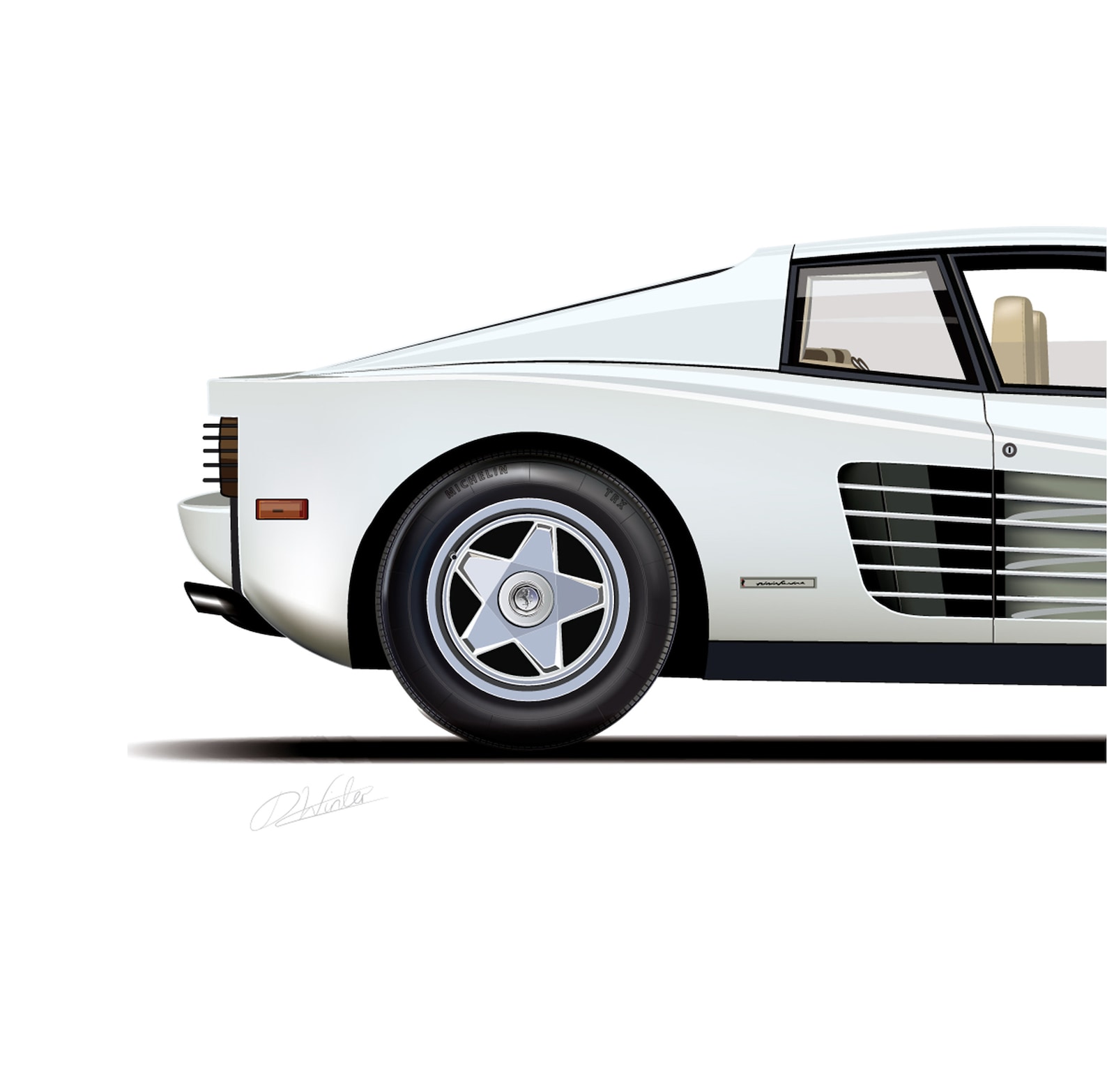 Ferrari Testarossa Miami Vice. Few cars can lay claim to be as instantly recognizable as a white Ferrari Testarossa, and we can all thank Miami Vice for that James "Sonny" Crockett drove a white 1986 Ferrari Testarossa, following the destruction of his Daytona Spyder by Stinger missile fired by Eddie Kaye